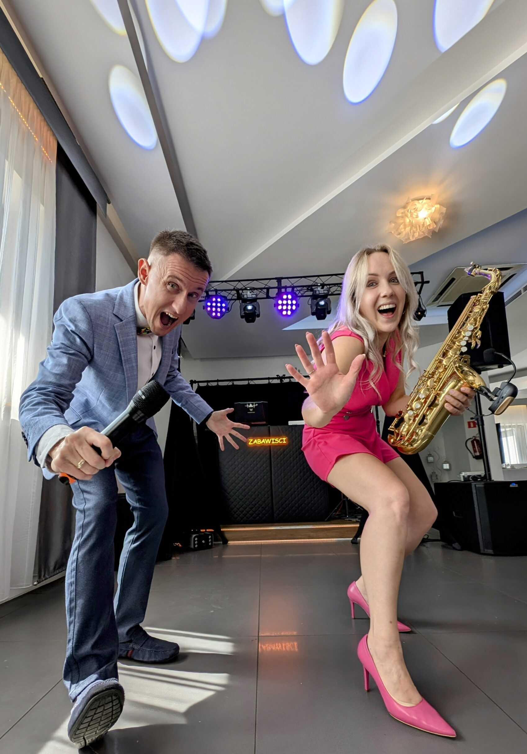 ZABAWIŚCI to coś więcej niż sam DJ na wesele – to również profesjonalna wokalistka i saksofonistka w jednej osobie, która urozmaica imprezę wyjątkowymi występami na żywo. Dzięki takiemu połączeniu nasza oprawa muzyczna łączy nowoczesność setu DJ-a z klasyką instrumentu i emocją żywego śpiewu – co sprawia, że każda uroczystość ma niepowtarzalny klimat.